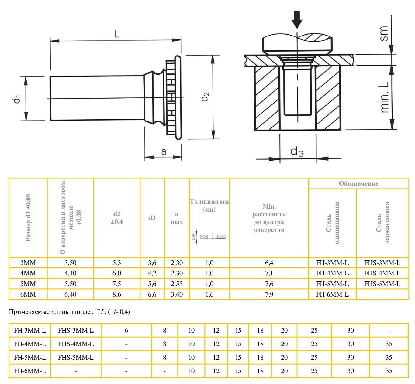 FHS-M5-20 Шпилька резьбовая запрессовочная нежавеющая сталь М5х20