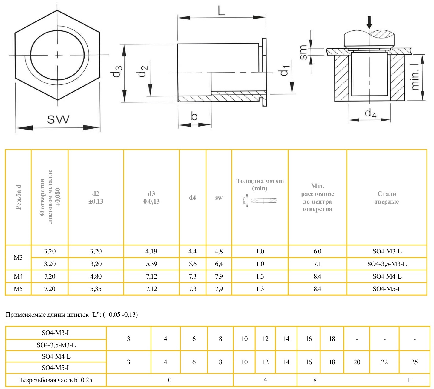 SO4-M3-3 Втулка запрессовочная резьбовая проходная сталь нержавеющая