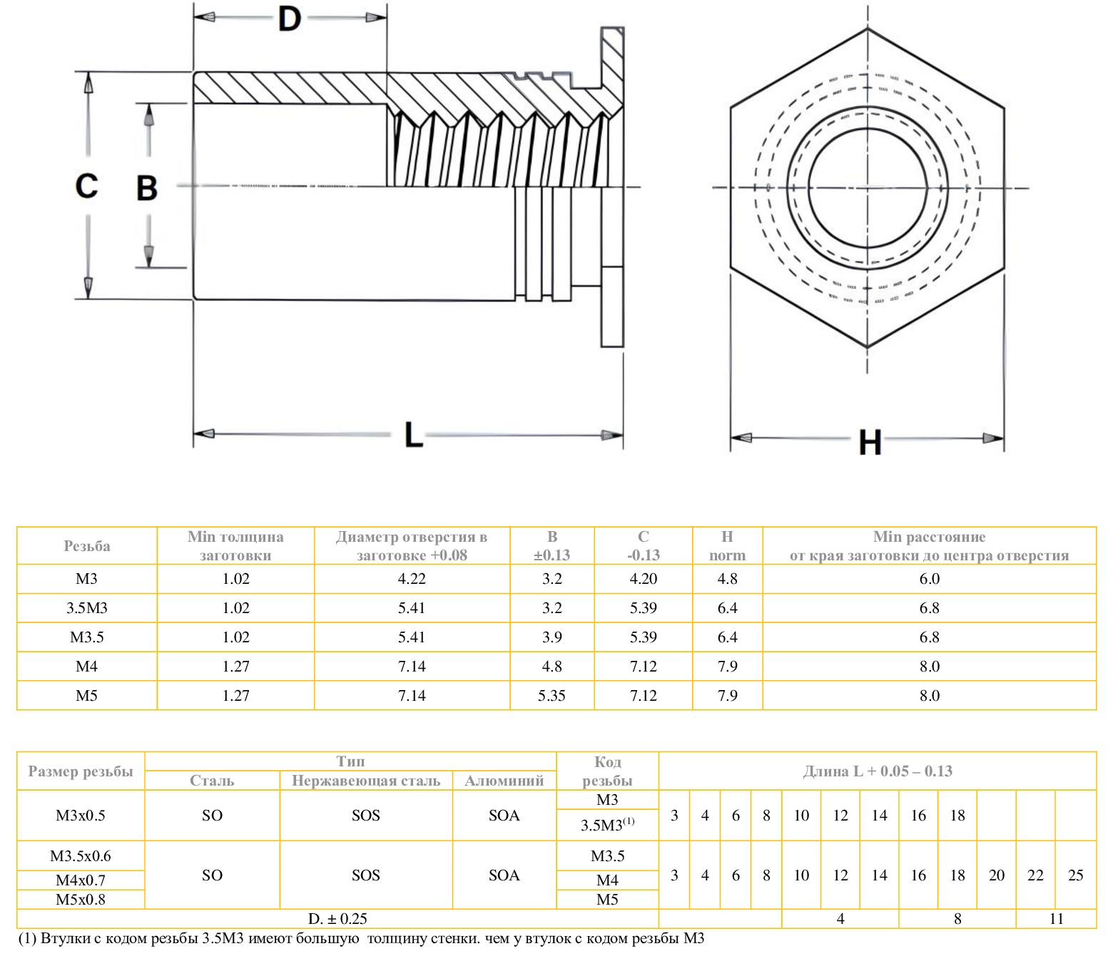 SOA-M3-04 Втулка запрессовочная резьбовая полнопроходная М3х4 алюминиевая